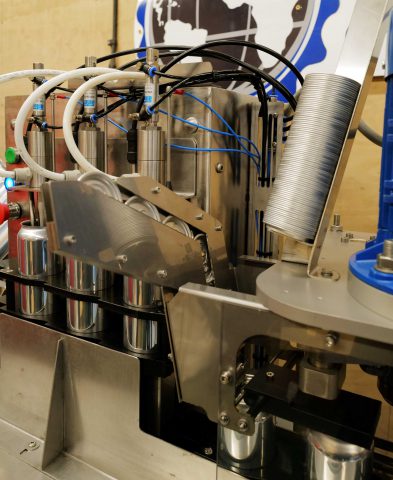 3 filling stations with automatic can seamer.