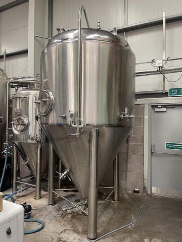 Spray ball, PRV, Pressure gauge, Sample point, Carbonation Stone, Temperature probe pocket, Side man-way door, 4” hop addition port on top, colling jackets on body and cone, Outlets on bottom and on cone. Dimensional drawings available.