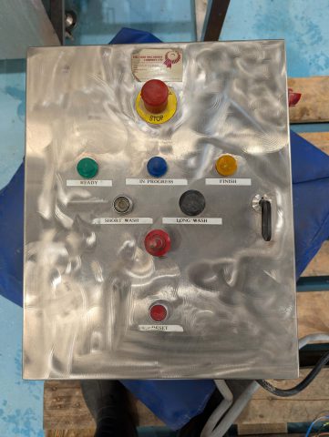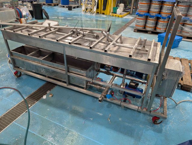 5 head Cask Washer. Capable of cleaning 40/50 casks per hour. All new actuator valves.