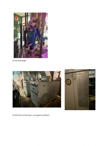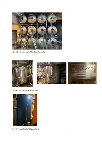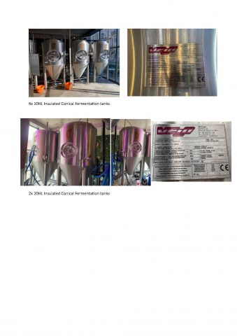 Complete high-spec European brewing plant in excellent working condition. 15hL VELO brewhouse (Mash/Kettle, Lauter Tun, separate Whirlpool) with pneumatic Kieselmann valves, step mash + decoction capability, internal calandria & vacuum boil (low DMS). 1 turn 5–6 hrs, 2 turns possible in ~9 hrs. Lauter capacity 400–500kg malt. Includes 35hL HLT (pump) + 35hL CLT (lager cast-out 9–10°C), Gavardo steam generator 200kg/h, 2× ICS iC416 chillers (51.5kW) + new 200L glycol drum, Omav compressor 150L/12 bar. Cellar: 2×22hL + 4×11hL VELO conicals (3 bar, spunding). Optional 12×10hL Duotank serving/conditioning tanks + VELO DE filter. Viewings available.